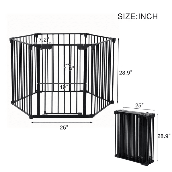 4-IN-1METAL SAFETY GATE: 1. Pet Gate - It can be used as a freestanding pet gate when you set it up as a circular enclosure; 2. Safety Fence - Suitable to use around fireplaces, grills, wood burning stoves, Christmas trees, etc. 3. Play yard: Set up sectioned off areas in your home for your toddlers or pets; 4. Barrier: Solid construction makes this a great option for creating room dividers; 5. Baby Gate - Great for wide spaces, angled openings, hallway, doorway or bottom of stairs.