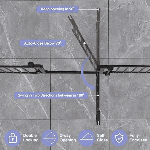 WALK THROUGH DOOR GATE: The entry door 19inch width is built with a child-proof double-locking system and it is very easy to open even with one hand, press down the button and lift-up the gate at the same time to open. The gate swing in both ways