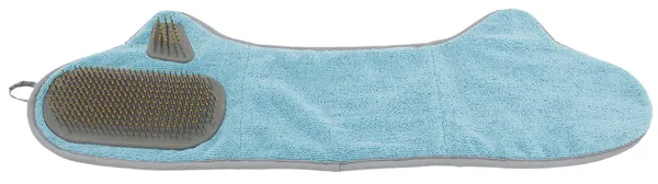 The Pet Life ® 'Bryer' 2-in-1 Microfiber Grooming Towel and Brush features a Pin Brush that's stitched onto a Microfiber Towel, providing the perfect solution for those looking to save time and brush their hair immediately after bathing or drying.