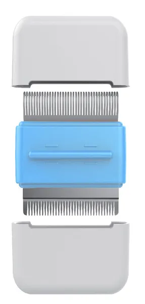 The 2-in-1 Travel Under-rake and Stainless Steel Dog Comb opens and closes like a clam-shell that features both an Under-rake and a Stainless Steel Comb that collide together when closed.