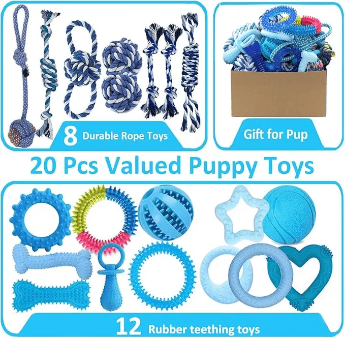 Help your puppy navigate the teething stage with the 20 Pack Puppy Chew Toys, crafted for comfort, entertainment, and dental health. Each toy features unique textures and shapes to stimulate chewing and relieve discomfort while promoting strong teeth and healthy gums.