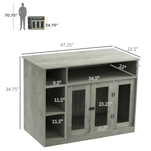 Dog Crate Table Info: Overall Dimensions: 47.25"" W x 23.5"" D x 34.75"" H. Internal Dimensions: 34.5"" W x 21.5"" D x 23.5"" H. Suitable for medium and large-sized dogs up to 55 lbs., Less than 21.75"" in body length. Assembly required.