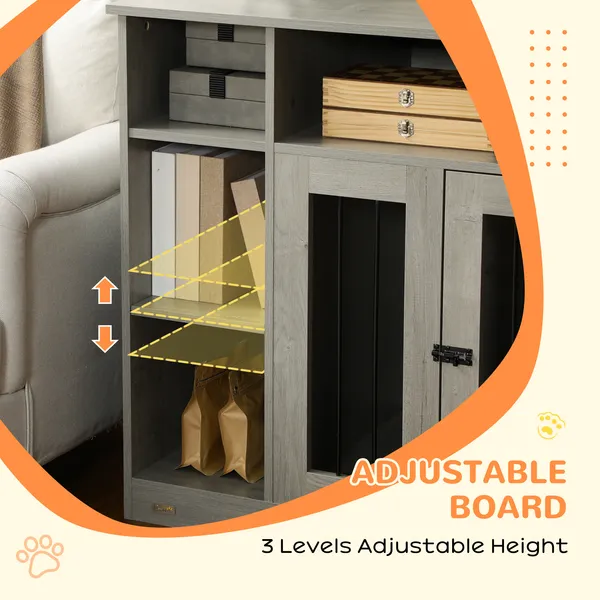 Flexible Shelf: An adjustable design can make better use of your space. The adjustable shelf of our dog kennel table allows multiple heights, so its storage space adapts to your needs.