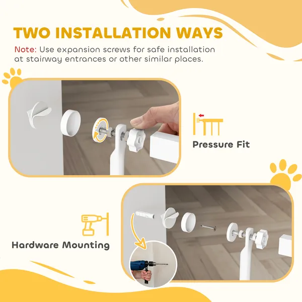 Set It Up Your Way: Hate drilling holes? No problem! Love extra stability? We've got you covered. This puppy gate offers both pressure-mount and drill-mount options for quick and easy installation that works for your home