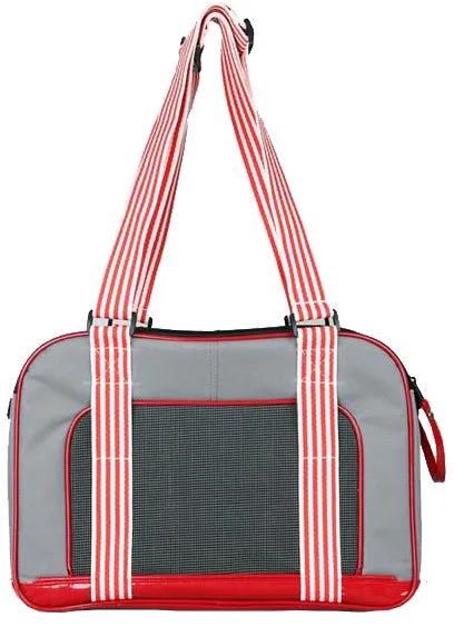 The Candy Cane Dog Carrier Purse Features Accented Candy-Cane Over-The-Shoulder Straps. This Dog Carrier also features Breathable Mesh alongside the Front.