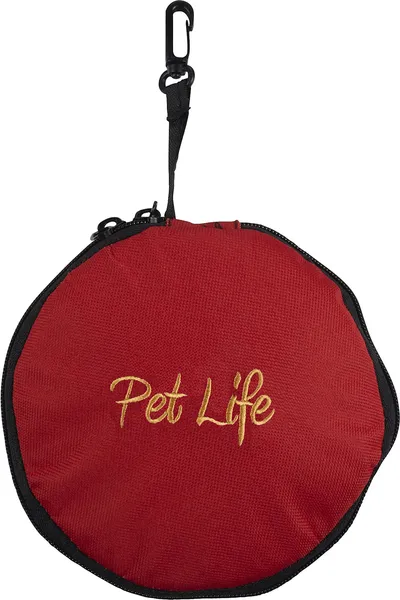 The Double Food and Water Travel Pet Bowl for dogs and owners on the go who want more than just functionality. Made with authentic seat belt material plus a double-ply waterproof interior. It will last for years and look great every time you use it. It collapses to less than 1 inch thick, Waterproof, and available in other colors.
