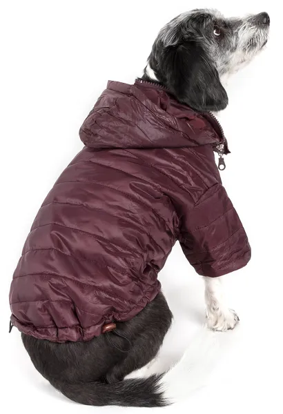 This Pet Coat Features an Attached Concealed Hood that actually 'Pops Out' of the collar. This Dog Jacket also Features Adjustable Straps along the backside and can be worn during or after your dog's growth stages for additional longevity usage.