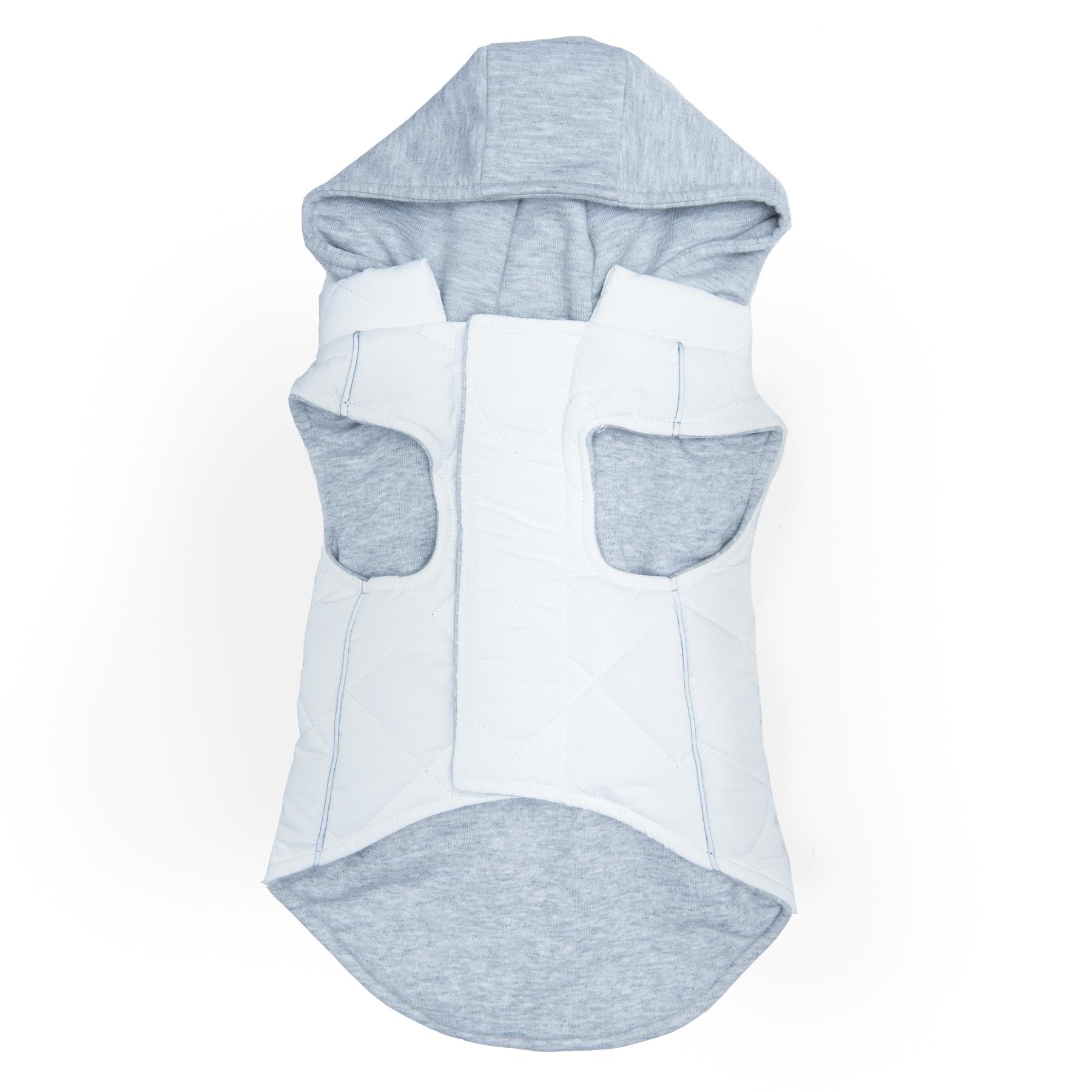The hood is also made of jersey material and can easily zip off when not needed. Reflective stripping makes your pup noticeable in low light while the two-inch fastener down the chest provides an adjustable closure.