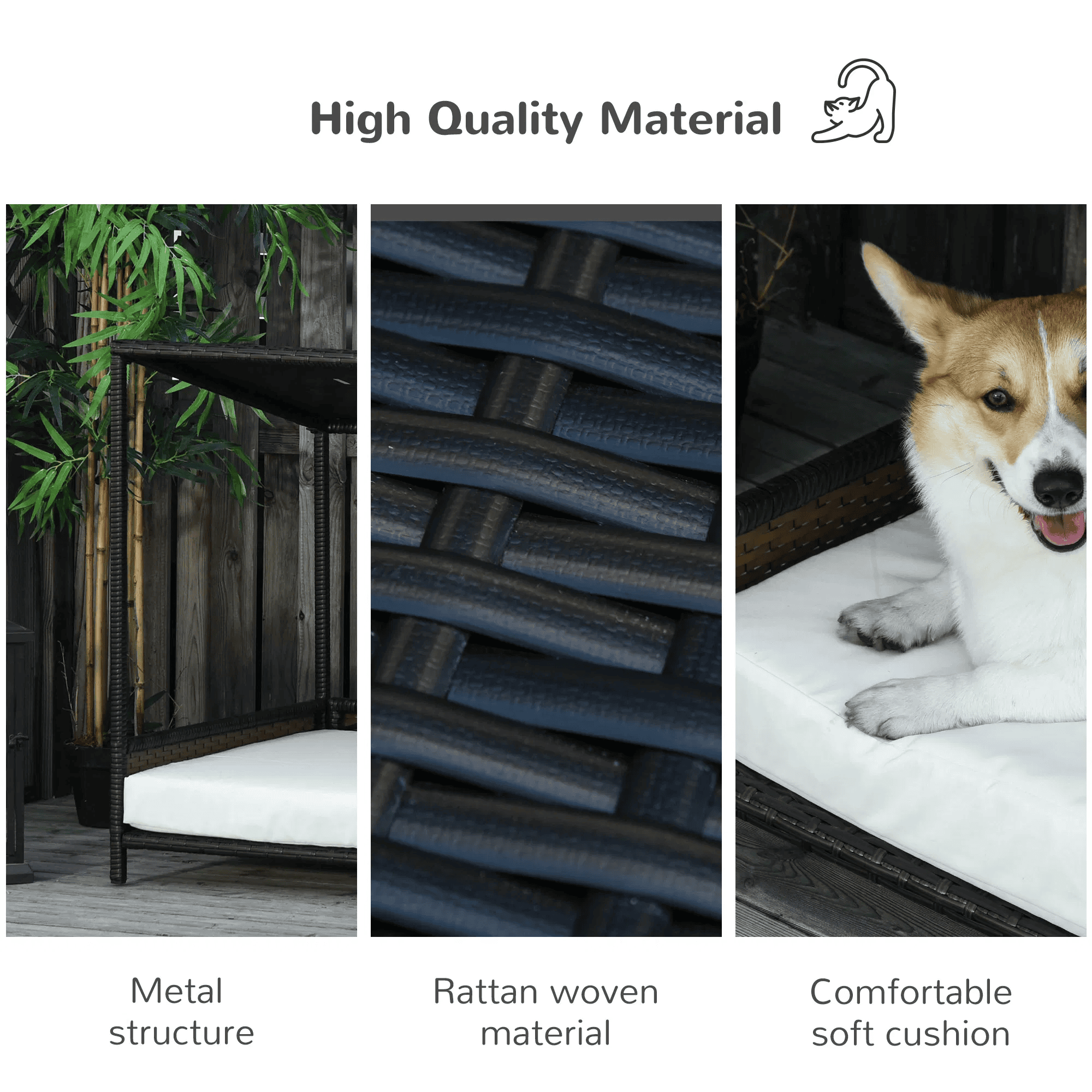 The rattan pet sofa bed has a solid steel frame for a stable structure that keeps your pet secure, while the vents provide air circulation to keep them comfortable.