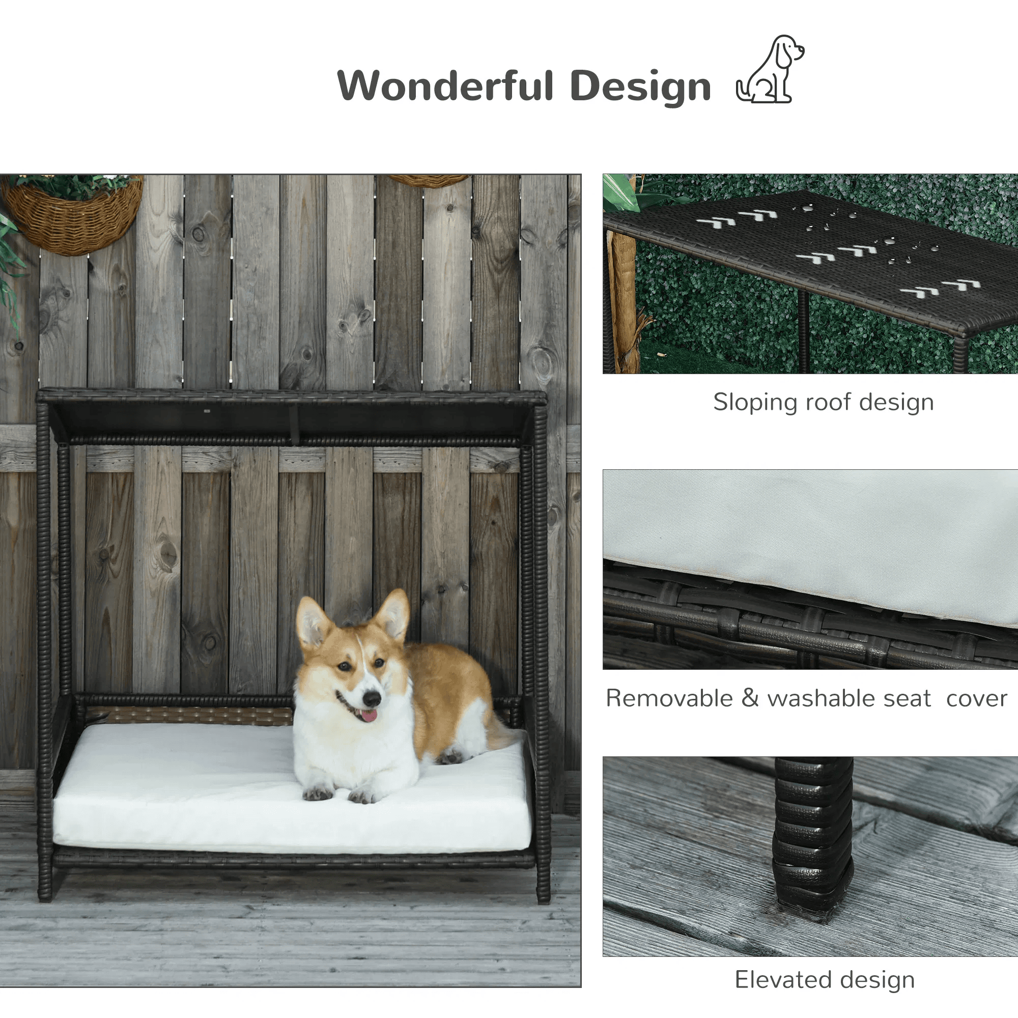 The wicker pet sofa bed has a sloped roof to keep your dog dry and shaded. Suitable for small and medium-sized dogs.