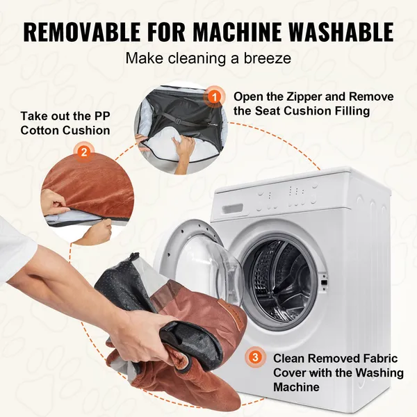 Easy to Clean: Designed for convenience, this puppy car seat has a fully removable cover and a built-in sliding zipper. Take out the filling, and the cover can be machine-washed, making maintenance simple and hassle-free.