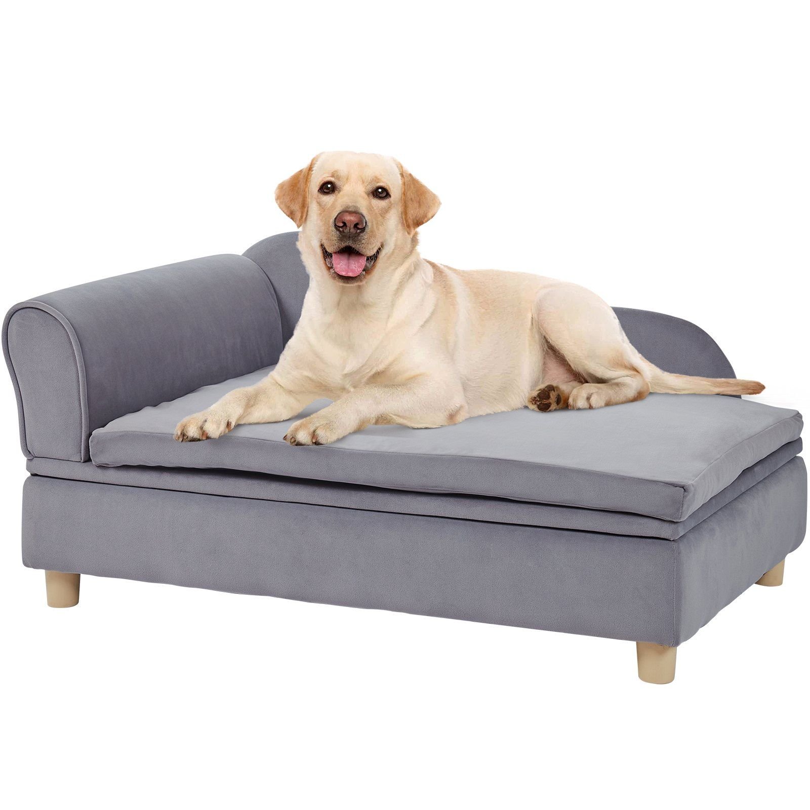 Easy to clean with just a damp cloth, our dog sofa resists hair and stains, making every use a pleasure for both you and your pet. More than a pet accessory, this dog sofa bed is a fashionable addition to any room. Available in various colors to match different decor styles, its strong support and solid wood frame accommodate even large dogs without sacrificing elegance.