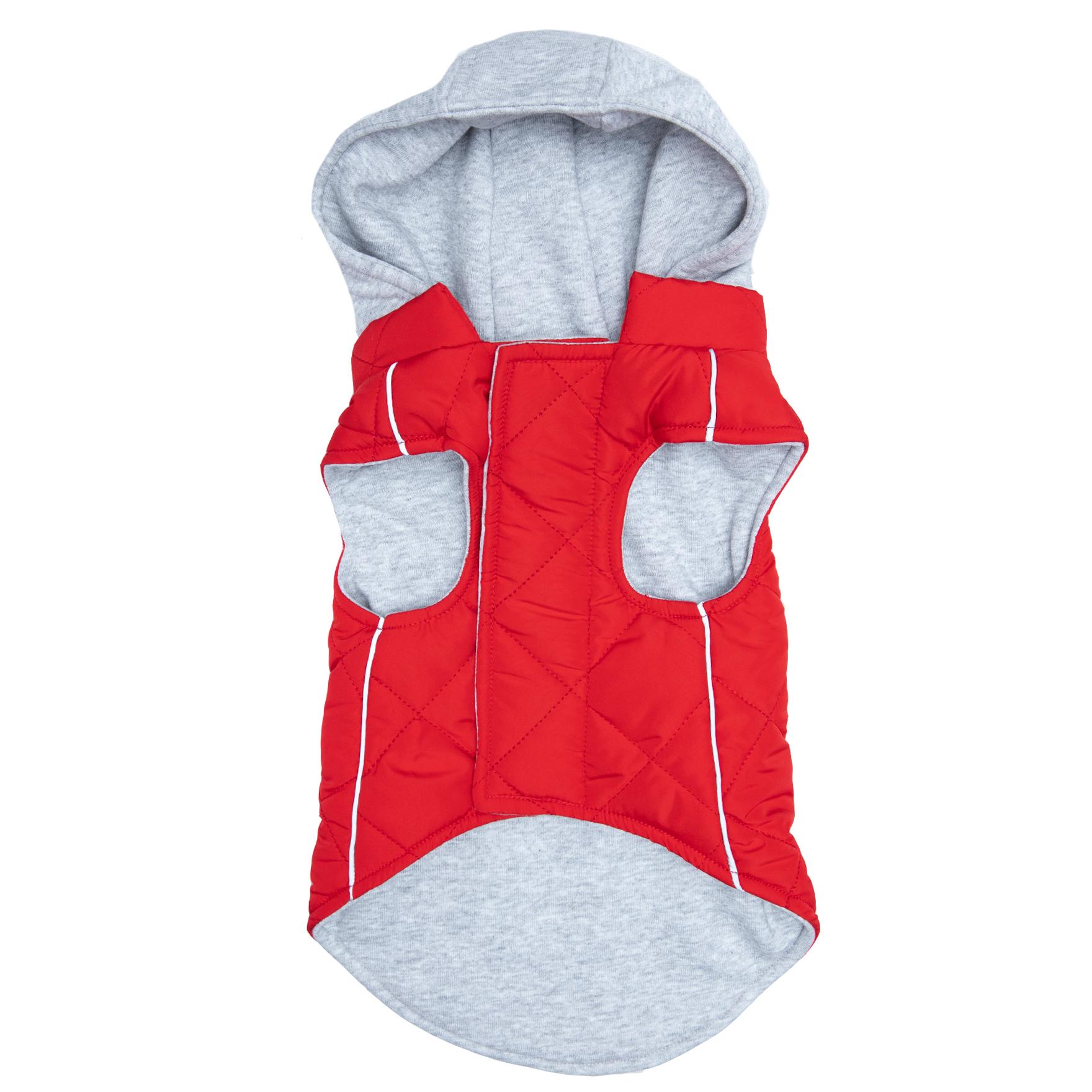 The hood is also made of jersey material and can easily be zipped off when not needed. Reflective stripping makes your pup noticeable in low light, while the two-inch fastener down the chest provides an adjustable closure.